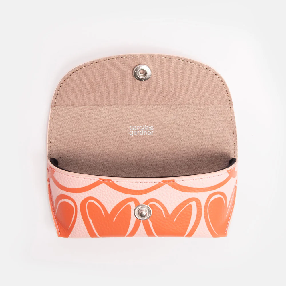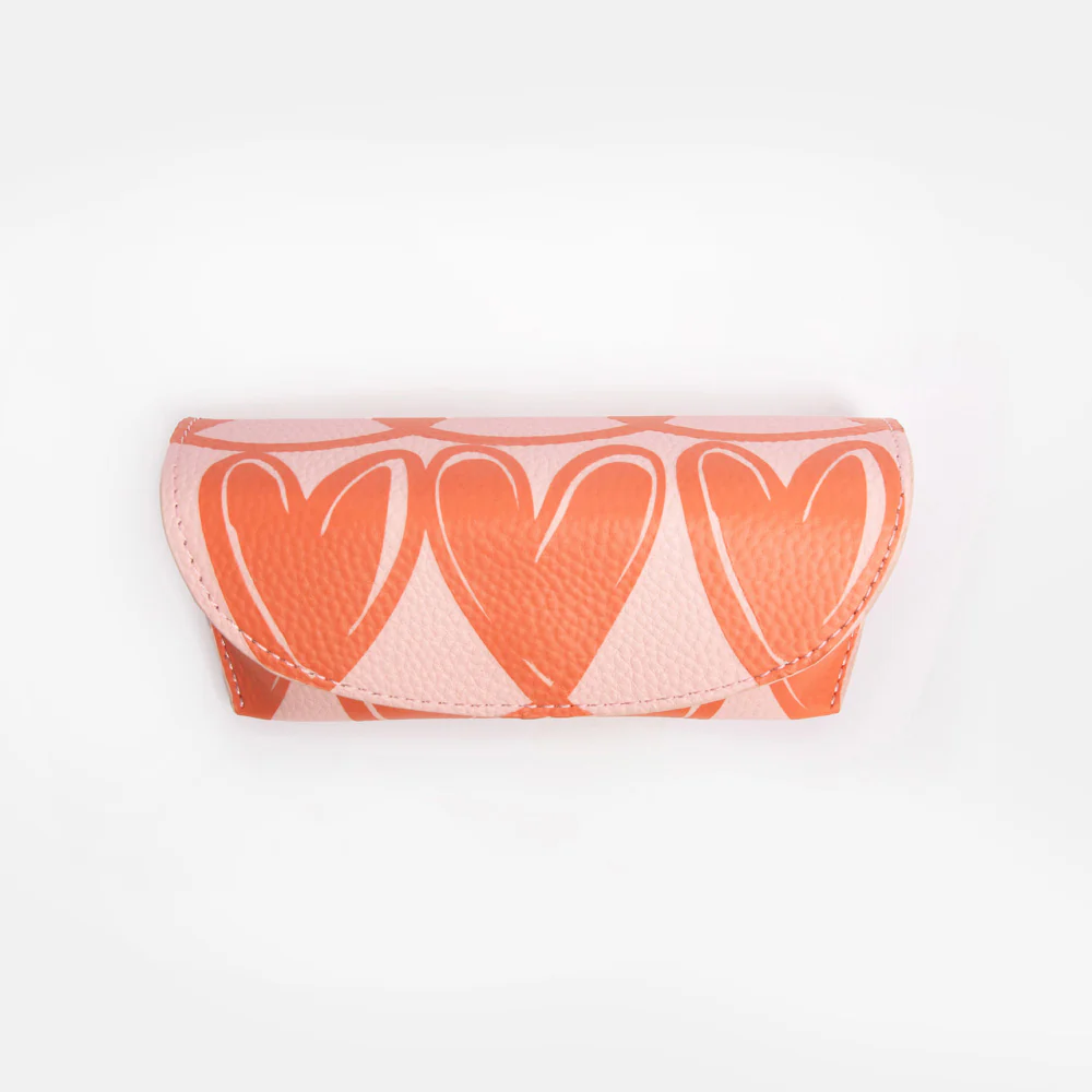 Store your glasses or sunglasses in style with this new orange looped hearts case. This suedette lined semi-hard case with built in nose piece is sure to keep your specs safe.